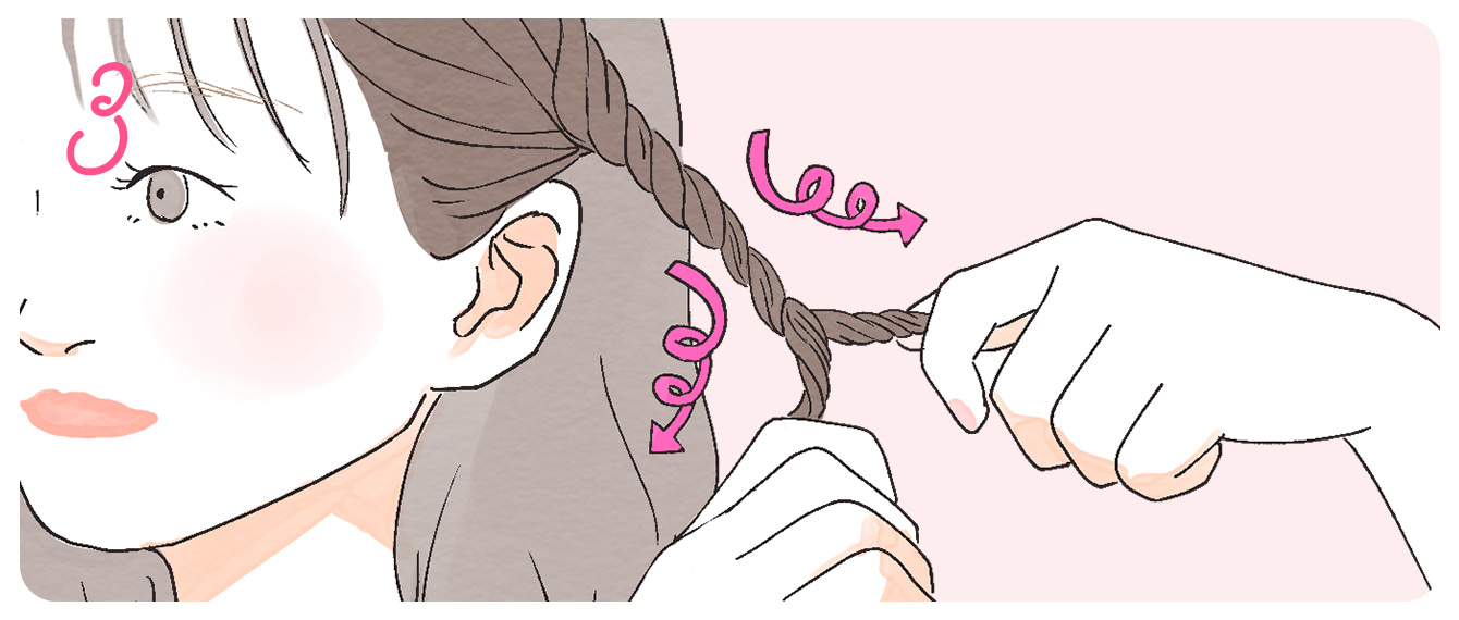 3本の編み込みよりも簡単なので、急いでいる時や不器用さんでも取り入れやすいのが魅力です。